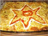 فلفل٬ هویچ٬ قارچ و پیاز نگینی خرد کرده و جدا جدا کمی سرخ میکنیم . پیاز را سرخ کرده بعد گوشت چرخ کرده توسط چرخ گوشت مولینکس را به آن اضافه کرده تفت میدهیم زردچوبه و رب را اضافه کرده کمی دیگر سرخ میکنیم یک حبه سیر هم خرد میکنیم مقداری آب ریخته و نمک و فلفل ریخته میزاریم تا بپزد.فلفل دلمه ای و هویچ و قارچ و نخود را هم اضافه کرده چند جوش بزند٬ تقریبا آبدار باشد سپس ادویه و جعفری را در آن ریخته مخلوط میکنیم.ماکارونی رو آبکش کرده زنده تر بر میداریم ظرف پیرکس را چرب کرده یک ردیف ماکارانی روی آن گوشت و کمی سس سفید( آرد ٬کره ٬ شیر) و پنیر پیتزا به همین ترتیب تا مواد تموم شود لایه آخر پنیرفراوان میریزیم . فر را با حرارت ۱۸۰درجه نیم ساعت میگذاریم تا پخته شود بعد گریل را روشن میکنیم تا روش طلایی شود.