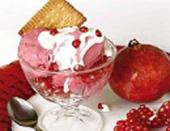 بستنی را از فریزر بیرون آورده و روی آن را با دانههای انار تزیین کنید.