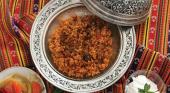 پیاز دیگر را خلالی خرد کرده و در روغن حیوانی یا کره سرخ کنید. در پایان نیز مقداری کشمش به پیاز اضافه کرده و تفت دهید. این مواد را روی غذای درشته بریزید تا با هم دم بکشند. نوش جان
