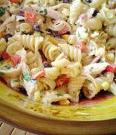 ابتدا ماكاروني را بگذارید بجوشد تا زماني كه نرم شود آن را داخل آبكش بریزید و با آب سرد آبكش کنید سپس مقداري روغن زيتون به آن اضافه کرده تا به هم نچسبد. مواد را به اندازه حبههاي قند (با رنده برقی مولینکس ) خرد کنید و با ماكاروني مخلوط نمایید و بهآن فلفل و نمك افزوده و داخل ظرف بریزید و با خیار شور روی سالاد را تزئین نمایید.