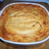 مخلوط را در یک ظرف مخصوص پخت یا سینی فر بريزيد و بر روي آن را پنیر چدار بپاشيد.