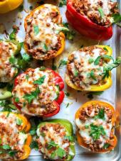 فر با دمای ۳۵۰درجهی فارنهایت یا ۱۷۵درجهی سانتیگراد از قبل گرم کنید و پس از آن فلفل دلمهایها را به مدت ۳۰دقیقه درون فر بپزید. و در آخر فلفل دلمه ای های شکم پر را از فر خارج کنید و در ظرف مناسب قرار داده و میل کنید.