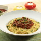 ابتدا پیاز را با خردکن مولینکس خرد کرده و با روغن تفت دهید. سپس گوشت را با چرخ گوشت مولینکس چرخ کرده و همراه با قارچ خرد شده به پیاز اضافه نمایید و تفت دهید. در ادامه رب گوجه، نمک و فلفل را نیز افزوده و تفت دهید. سپس 3 لیتر آب را با کمی نمک و 1 قاشق روغن در قابلمه ریخته و بگذارید بجوشد. وقتی آب به جوش آمد ماکارونی را ریخته و پس از اینکه مغز ماکارونی پخته شد آنرا آبکش کنید. سپس نیم پیمانه آب و روغن را داخل قابلمه ریخته و سیب زمینی ها را بچینید و به ترتیب یک ردیف ماکارونی و یک ردیف مایع ماکارونی بریزید. سپس اجازه دهید تا دم بکشد.( توجه داشته باشید که در این مرحله حرارت شعله باید کم باشد.) بعد از دم کشیدن، ماکارونی را روی آن بریزید و با سبزیجات تزیین نمایید. نوش جان