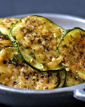 آنها را بپزید به مدت در حدود ۳۰ دقیقه تا وقتیکه پنیر آب شود و کدوها ترد شوند و مراقب باشید که نسوزند.