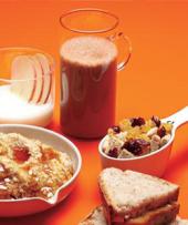 بدنبال غذایی باشید که سرشار از فیبر و پروتئین باشد و چربی و قند پایینی داشته باشد.این میان وعده ها باعث میشود فرزندتان برای مدت زیادی سیر بماندو در میان تکالیف خود دچار افت نشود. شکلات داغ میتواند مناسب باشد، چون مقداری کافئین دارد که سطح اندروفین بدن را بالا میبرد که باعث افزایش تمرکز میشود. توصیه ها: سه چهارم فنجان ماست وانیلی با یک قطعه سیب یا گلابی برای اینکه همراه با ماست میل شود یک فنجان شکلات داغ یک دوم فنجان مخلوط غلات به همراه یک چهارم فنجان میوه های خشک طبیعی ( شیرین نشده ) یک دوم فنجان بلغور جو ( با جو پرک فرق دارد ) که روی آن دو قاشق چای خوری تخم کتان خرد شده و یک قاشق چای خوری عصاره افرا ریخته شده باشد دو قطعه نان سبوس دار به همراه یک قاشق غذا خوری کره بادام زمینی طبیعی.