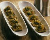 در ظرفي هويج، کدو، سيرله شده، نعناع، جعفري، زيره، آب ليمو ترش، نمک و فلفل را مخلوط کرده و روي هر کدام از نان هامقداري از اين مواد قرار دهيد و در آخر مقداري کنجد روي هر کدام بريزيد.
