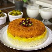 پس از اتمام مرحله دم کشیدن، برنج را داخل دیس کشیده و آن را با زیتون و ماست نوش جان کنید.