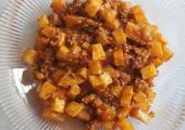 - سیب زمینی رو اضافه میکنیم و ۵دقیقه دیگه میزاریم بمونه سپس تاس کباب و درون بشقاب سرومون میکشیم میتونیم این غذای خوشمزه را میتونید با پلو که به وسیله پلوپز مولینکس آماده شده نوش جان کنید.