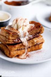 - درون تابه ای مقداری کره ریخته و اجازه دهید تا کره ذوب شود سپس نان تست ها را درون مخلوطی که آماده کردیم بغلتانید و بعد درون کره سرخ کنید سپس درون بشقاب سروتون بچینید و با بستنی میل کنید. نوش جان