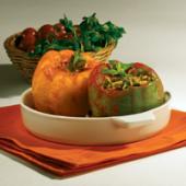 گوشت را با چرخ گوشت مولينكس و يا غذاساز مولينكس كه به چرخ گوشت مجهز مي باشد چرخ نماييد . سپس سبزي و پياز را در كاسه غذاساز و يا خردكن مولينكس خرد نماييد.سپس گوشت را در تابه با روغن كمي تفت داده سبزي خرد شده و پياز را حين تفت دادن به آن بيافزاييد ، رب گوجه فرنگي، برنج، آبليمو،نمك و فلفل را اضافه نموده و با گوشت و سبزي تفت دهيد . سپس يك فنجان آب گوجه فرنگي را به آن بيافزاييد تا به اصطلاح دو سه جوش زده و آماده شود.سر فلفل ها را به شكل دايره بريده و محتويات داخل آنها را خالي كرده و با آب و نمك بجوشانيد تا كمي نرم شوند. سپس داخل آنها را با مايه گوشت كه تهيه كرده ايد پر كرده و در قابلمه بچينيد و مقداري آب گوشت روي آنها بريزيد و اجازه دهيد تا با حرارت ملايم، فلفل دلمه ها بپزند و سپس آنها را در ظرف مخصوص سرو چيده و آن را با گوجه فرنگي و سبزيجات تزيين نماييد.