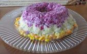 سپس شویدهای خرد شده را روی لایه سیب زمینی پخش میکنیم وهویج را با رنده برقی مولینکس رنده کنید ودر مرحله آخر مخلوط هویج و ذرت و سس را میریزیم و مجددا با قاشق فشار میدهیم و در اخر کیسه فریزر باقیمانده از لبه ظرف را روی سالاد میکشیم و برای حداقل یک ساعت در یخچال میگذاریم تا خودش را بگیرد.