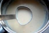 ابتدا پنیر ها را با رنده برقی مولینکس رنده کنید . برای تهیه سس ، چهار پنیر را، ابتدا در یک تابه متوسط و خامه و کره را با هم خوب مخلوط کنیدو روی حرارت متوسط، هم بزنید تا کره آب شود.