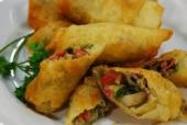 ابتدا پیازها را خرد کرده و سرخ میکنیم سوسیس ها و قارچ ها و سیر ها را نیز خرد کرده و اضافه نموده و سرخ میکنیم نمک و فلفل و جعفری خرد شده را میریزیم .بعد خمیرها را که مثلثی شکل اند روی سطح صافی گذاشته و از مواد در قسمت پایین مثلث یعنی قاعده اش ریخته و رول میکنیم قسمت انتهایی را با سفیده تخم مرغ می چسبانیم و به زرده آغشته نموده و داخل سرخ کن ریخته و سرخ میکنیم. میتوانیم قبل از سرخ کردن به کنجد آغشته کنیم . نوش جان