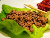 دور یک بشقاب بزرگ سرو غذا کاهوها را چیده و ترکیب گوشت را در مرکز ظرف بریزید.