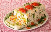 هویج را با پلوپز-بخارپز مولینکس بخارپز کنید . در یک کاسه ی متوسط، سیب زمینی،هویج، نخود شیرین، ذرت، ماینوز و خامه ترش را اضافه کنید و مخلوط کنید، طبق ذائقه نمک و فلفل بزنید. آب مرغ و ژلاتین را اضافه کنید. به خوبی مخلوط کنید. مخلوط را داخل قالب نان بریزید. قبل از سرو کردن حداقل 5 ساعت در یخچال قرار دهید.