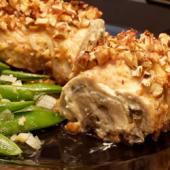 سینه مرغ را با گوشت کوب بکوبید تا نازک شود. آن را پهن کنید و با مخلوطی از قارچ پر کنید و آن را ببندید. در یک کاسه کوچک، شکر و خردل را مخلوط نمایید و از این مخلوط با قاشق کمی بر روی مرغ بمالید.