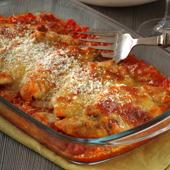 سینه مرغ را از وسط به دو نیم تقسیم کرده سپس با نمک و فلفل سیاه پودر شده آن مزه دار نمائید . روغن زیتون را در تابه ای ریخته و داغ کنید مرغ مزه دار شده را در آرد زده کمی بتکانید. تا آرد اضافه آن بریزد و در روغن 2 دقیقه سرخ کنید طلایی شود پس از این از روی شعله برداشته و کناری بگذارید در همان تابه روغن زیتون ریخته و پیاز و سیر را که به کمک غذاساز مولینکس خرد کرده ایم را اضافه کنید و 30 ثانیه تفت دهید و بلافاصله گوجه فرنگی خرد شده را به همراه ریحان (خرد شده توسط خردكن غذاساز مولينكس) به همراه آویشن و نمک به تابه اضافه کنید مدام سس گوجه فرنگی را زیرو رو کنید تا آب گوجه فرنگی کمی جمع شوند و رنگ گوجه فرنگی ها تیره گردد و سس به روغن بیفزائید. توجه داشته باشید که سس نباید خیلی خشک باشد در حین پخت آویشن ، سرکه ، شکر و نمک را اضافه کرده و چاشنی سس را اندازه کنید. فر را روی دمای 180 درجه سانتیگراد( 360 درجه فارنهایت ) گرم کرده ظرف فر را کمی چرب کنید و سس را کف آن بریزید سینه های سرخ شده را روی سس چیده و پنیر پارمزان و پنیر موتزارلا ریخته و برای 20 تا 30 دقیقه در فر تا زمانی که سس شروع به جوشیدن کرده و روی مرغ کاملا طلایی شود پخت را ادامه دهید. از فر در آورده و بلافاصله با پاستای پخته شده و سالاد سبزیجات سرو نماييد.