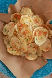 می تونید یک دست با رنده غذاساز چیپس ها را ورقه ورقه رنده کنید تا چیپسی ترد و یک دست داشته باشید