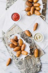 اگر دوست دارید هات داگ را خاص تر امتحان کنید این دستور را ازدست ندهید. کورن داگ یک فست فود خوشمزه و وسوسه انگیز است.که تاریخچه آن برای ایالت متحده آمیریکا است. این هات داگ را با لایه ای از پنیر و خمیر می پوشانند و در روغن فراوان سرخ میکنند.