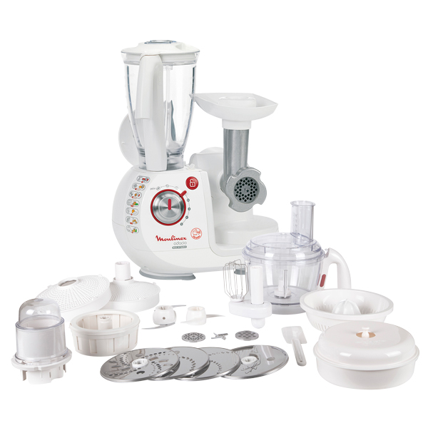 غذاساز مولینکس مدل FP77 تنها غذاساز مولینکس است که چرخ گوشت دارد. و اینبار مولینکس با غذاساز FP77 خود را به رخ سایر رقیب هایش میکشد. شما با وجود این غذاساز مولینکس دیگر نیاز نیست که چرخ گوشت جداگانه تهیه کنید و شما میتوانید به راحتی با چرخ گوشت غذاساز FP77 مولینکس انواع گوشت ها را چرخ کنید این مدل غذاساز مولینکس ساخت فرانسه می باشد. غذاساز FP77 مولینکس همچنین دارای آبمیوه گیری، آب مرکبات گیری، پوره ساز می باشد و همچنین این غذاساز به همراه آسیاب است. خردکن غذاساز FP77 مولینکس مناسب برای خرد کردن سیر، پیاز و انواع سبزیجات می باشد. در آخر غذاساز FP77 یک غذاساز کامل برای آشپزخانه است. مولینکس در زمینه غذاساز به خوبی درخشیده است. این غذاساز مولینکس دارای دکمه قفل کردن قطعات است. رنده غذاساز شامل رنده کردن ریز، درشت، خلال کردن،خردکردن، چیپس کردن است.