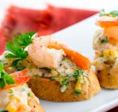 طرز تهیه:میگوها را تمیز کنید و بشویید ، نصف میگوها را ریز با غذاساز مولینکس خرد کنید و نصف دیگر را برای روی بروشتا کنار بگذارید.