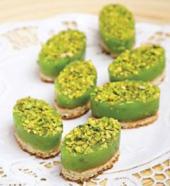 ابتدا پسته ها رو به وسیله دستگاه آسیاب مولینکس به صورت پودر در می آوریم. کره را در ظرفی ریخته روی حرارت قرار دهید تا ذوب شود، آرد را اضافه کنید و مرتب هم بزنید. روغن مایع را اضافه کنید، شربت آماده شده را نیز بیفزایید تا شربت جذب آرد سرخ شده شود. رنگ سبز، هل و پودر پسته را اضافه کرده و درصورت خشک بودن خمیر میتوان کره به آن اضافه کرد. داخل اسکوپ بستنی یا قاشقهای اندازهگیری، حلوا را فشرده کرده و از قاشق جدا کنید، سپس در کپسولهای کاغذی قرار دهید یا با استفاده از قالبهای مونوپورشن و مقداری کیک اسفنجی حلوای پسته را تزیین کنید.