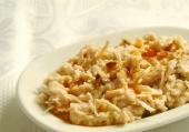 سینه مرغ نونهای خیس شده سیر و فلفل قرمز رو داخل خردکن مولینکس ریخته تا مخلوط شن، بعد گردوی خرد شده رو اضافه میکنیم. اگه دیدین خیلی خشک شده می تونین ذره ذره آب مرغ اضافه کنین تا یه خرده نرم تر شه.