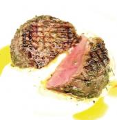 تابه گریل را روی حرارت زیاد گاز بگذارید تا كاملا داغ شود. برگهای رزماری را از شاخه جدا كرده و در آخر آن را خرد كنید و با میزان قابل توجهی نمك و فلفل روی یك تخته چوبی مخلوط كنید.
