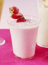 مقداری توت فرنگی تازه بخرید و آن ها را خوب بشویید و برگهای آن را جدا کنید. آنها را چند تکه کنید و درون دستگاه همزن مولینکس بریزید و پوره کنید.ماست و شکر را به پوره توت فرنگی اضافه کنید.
