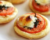 گوجه فرنگی ها را به صورت حلقه ای خرد کنید و روی پنیر پارمزان قرار دهید ، روی هر گوجه فرنگیچند قطره روغن زیتون بپاشید سپس با ریحان خرد شده ، سیر رنده شده و پنیر موزارلایی که به شکل مکعب های کوچک خرد کرده اید تزیین کنید.