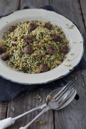 برنج را با کمی زردچوبه و نمک بزارید که بجوشد. برنج نباید زیادی نرم شود باید کمی خشک برش دارید. و .بعد سبزی خرد شده را اضافه کنید