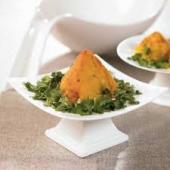 ابتدا سیبزمینیها را با مقداری آب و نمك پخته و بعد پوست بكنید و بوسیله همزن قلمی به شكل پوره درآورید، سپس 2 عدد از تخممرغها را نیز آبپز كنید و به شكل تكههای كوچك مربعی خرد كنید.پیاز را خرد كرده و با مقداری روغن تفت داده و گوشت را اضافه كنید. جعفری، نمك، فلفل، زردچوبه،زعفران و جوزهندی را نیز اضافه كنید. پورهها را خوب مخلوط كنید و با انگشت گود كنید و داخل آنها را با مواد پر كنید، سپس یك تكه از تخممرغ را داخل هر كدام قرار دهید و آنها را ببندید.با دست به كوفتهها فرم بدهید و آنها را به شكل مخروط درآورید. تخم مرغ باقی مانده را در ظرفی جداگانه بشكنید و خوب مخلوط كنید و كوفتهها را داخل تخممرغ زده شده بزنید و داخل پودر سوخاری بغلتانید. در آخر مخروطها را در روغن داغ سرخ كنید.