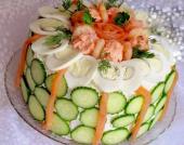 نان را روی سطح کار قرار دهید و لایه لایه بین نان ها را با مخلوطی که آماده کرده اید پر کنید ، اطراف کیک را با سس مایونز ، خیار ، هویج ، تخم مرغ و … تزیین کنید و 1 – 2 ساعت داخل یخچال قرار دهید تا سرد شود سپس سرو کنید.