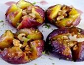 انجیرهای بزرگ و سیاه را با چاقو برش میزنیم. کمی گردوی آسیاب شده توسط آسیاب مولینکس، روی آنها میریزیم و حدود ٧ دقیقه در فر با دمای ١٧٠ درجه میگذاریم .