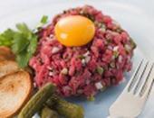 آبلیمو را می گیریم پیاز را نرم رنده می کنیم نمک و فلفل و خردل را با پیاز رنده شده و آبلیمو مخلوط نموده و گوشت را با چرخ گوشت مولینکس چرخ کرده و در داخل آن ریخته و خوب مخلوط می نمائیم و در آخر کار سبزی را اضافه کرده هم می زنیم و گوشت را به دو قسمت مساوی تقسیم می نمائیم و در دست به شکل یک پرتقال صاف مرتب در می آوریم وسط دو بشقاب می گذاریم .
