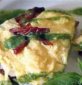 پس از تست شدن نانها، پنیر نرم را روی نانها میریزیم. مخلوط تخممرغ را روی نانها تقسیم می کنیم و هر نان تست را نصف میکنیم. در هر بشقاب 4 تکه گذاشته و با گوجهٔ خشک و برگ ریحان تازه تزئین کرده و کمی پستو روی آنها میریزیم.