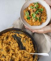 میتوانید برای این غذا پیاز و سیر را با خردکن گوشت کوب برقی مولینکس خرد کنید و در آخر مواد را با گوشت کوب برقی له کنید.