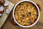 در آخر نیز پاپریکا و ادویهها را اضافه و مخلوط کنید.درب قابلمه را بگذارید و با حرارت متوسط خوراک بیگوس حدود سه ساعت دیگر آماده میشود. نوش جان