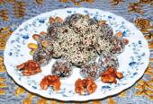 بیسکوئیت ها را کاملا پودر کرده و آن را با گردو چرخ کنید گلاب را به مواد اضافه و کمی ورز دهید.