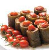 سپس ازمواد گوشتی داخل خیارها را پر میکنیم و روی آنها یک برش گوجهفرنگی قرار میدهیم.