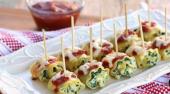 بهتره روی رول ها رو فویل بکشیم تا خشک نشود. سینی رو داخل فر میگذاریم. تا زمانی که پنیر داخلی رول ها نرم و پخته به نظر بیاد. روی هر رول یک خلال دندون فرو می کنیم .با سس گوجه فرنگی سرو می کنیم.