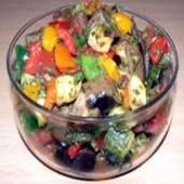 بادمجان، کدو و گوجه فرنگي را به مدت دو ساعت در روغن زيتون ميخوابانيم.