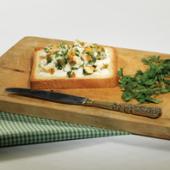 ابتدا پنیر و کره را با هم مخلوط نمایید. سپس نان تست را در تستر مولینکس قرار داده تا برشته شود و بعد روی هر برش نان 2 تا 3 قاشق از مخلوط کره و پنیر قرار داده و کمی پیازچه روی آن بریزید. و د رآخر نمک و فلفل را به میزان دلخواه روی آن پاشیده و میل نمایید. نوش جان