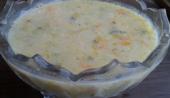 سپس آب مرغ را ریخته تا مواد بپزد. بعد مواد را خارج کرده مقداری از آن را به صورت پوره کرده با استفاده از همزن قلمی و بعد دوباره همه ی مواد را به قابلمه برگردانید.