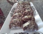 بعد از این مدت بیرون آورده و به شکل حلقه حلقه برش میدهیم و با پودر پسته تزیین میکنیم.