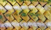 - خمیر آماده را لوله کرده و به اندازه های یکسان تکه کنید و تکه ها را با وردنه باز کنید تا جایی که نازک شوند. سپس ورقه های نازک خمیر را دونه دونه روی ساج انداخته و هر دو طرف آن را روی گاز بپزید. قبل از اینکه خمیر خنک شود روی تخته کار پهن کنید و روش را مایه بادام (مخلوط هل ، پودر قند و پودر بادام) بپاشید. سپس ورقه ها را لوله کنید.وروی آن را با فشارمناسب وردنه بکشید. و به شکل اریب با کاتر برش بزنید . بدین ترتیب شیرنی شما آماده است و می توانید در ظرف در بسته در یخچال نگه داری کنید.