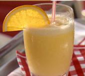 سپس، پرتقال پوست کنده و خرد شده را به همراه پوست پرتقال رنده شده درون مخلوطکن مولینکس بریزید و حدود یک دقیقه دیگر مخلوط کنید. رنگ نوشیدنی باید زرد و روی آن کف ایجاد شود.