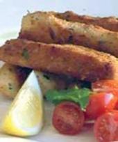 فر را روی ۲۰۰درجه سانتی گراد تنظیم و روشن کنید. سینی سیم دار را که کمی چرب شده است، روی سینی فر قرار دهید. خرده نان، برشتوک، پودر لیمو و فلفل، سیر و نمک را با آسیاب مولینکس آسیاب کنید تا به شکل پودر در بیاید. سپس آن را در یک ظرف گود خالی کنید. در یک ظرف آرد و در ظرف دیگر سفیده تخم مرغ را که کمی زده شده است بریزید. فیله ماهی نازک برش زده را ابتدا در آرد، تخم مرغ و سپس در خرده نان و برشتوک آسیاب شده بغلتانید و در سینی بچینید. ماهی را تا زمانی که روی آن طلایی شود، بپزید.