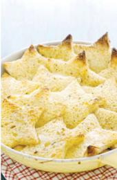 كف ظرف را با روغن زيتون چرب كنيد. با استفاده از يك قيچي، نانها را به صورت ستارهاي ببريد. نانهاي ستارهاي را در تابه بگذاريد. تخممرغ، شير، مربا، شكر و دارچين را با هم مخلوط كرده و آنقدر با همزن مولینکس هم بزنيد كه خمير يكنواختي بهدست آيد. مخلوط را به صورت يكنواخت روي نانها بريزيد. حالا ظرف حاوي نانها را، حداقل براي 2 ساعت، درون يخچال بگذاريد. با اين كار، مخلوط ذكرشده، جذب نانها ميشود. حالا نانها را در دماي 190 درجه سانتی گراد بپزيد تا طلاييرنگ شوند.