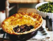 حالا خمیر شیرینی پخته شده را روی ظرف پای بگذارید. زرده تخممرغ را با كمی نمك بزنید و بعد آن را با یك قلممو روی سطح خمیر بمالید. ظرف را برای 30دقیقه در فر گذاشته تا خمیر ترد و طلایی شود. تا محتویات درون ظرف داغ است، آن را سرو كنید.
